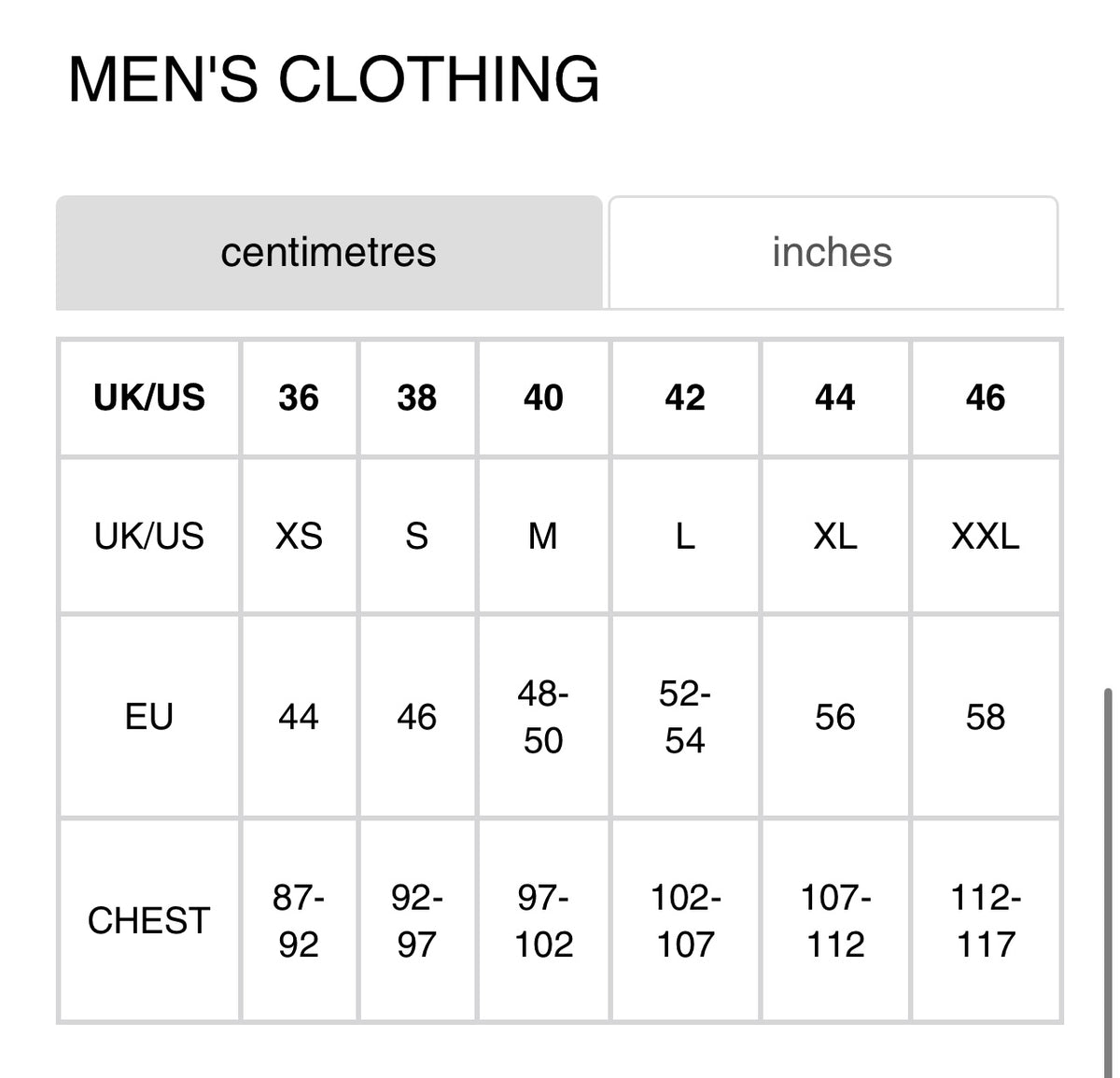 MENS SIZE GUIDE