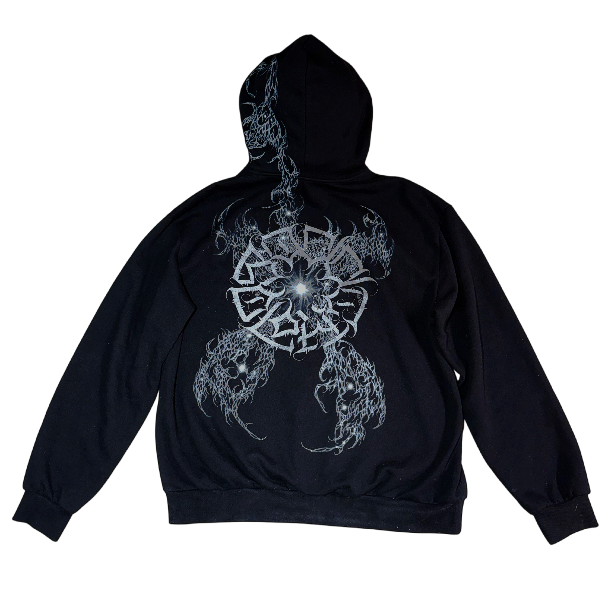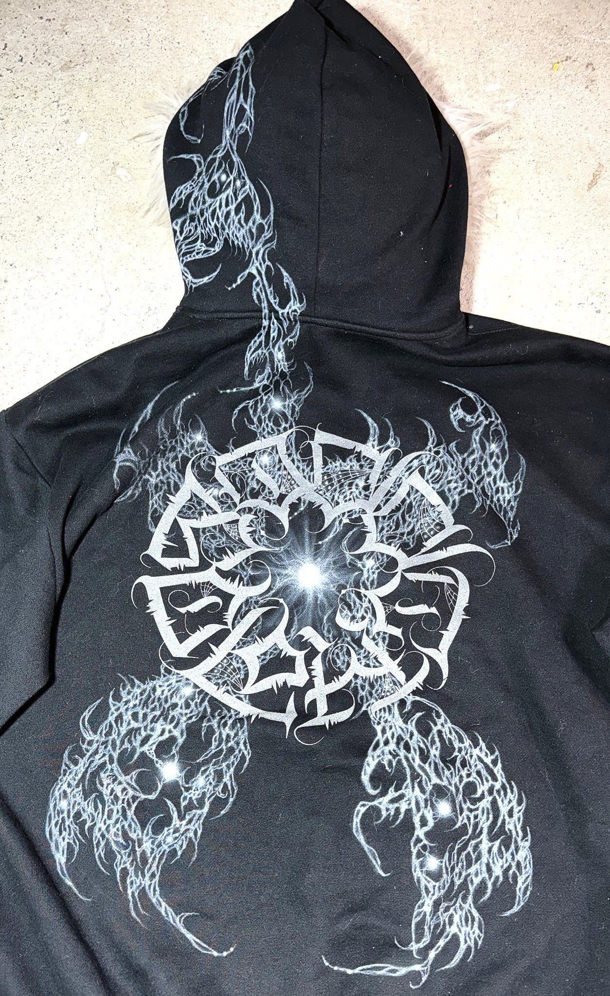One of a kind airbrushed hoodie with premium grey fur brim. 3M reflective printing.